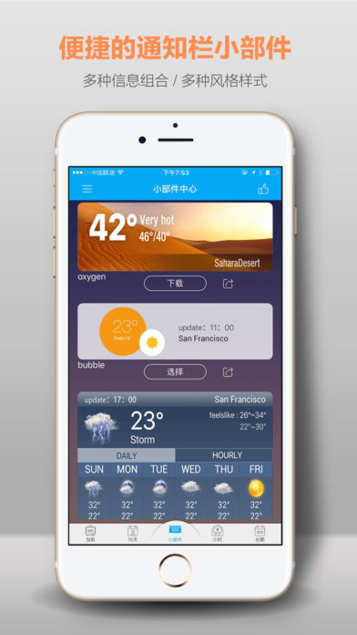 琥珀天气加强版是一款拥有大量免费精美易用通知栏小部件的天气应用,提供精确的当天天气信息、小时预报信息、7 天到未来一年的天气预报信息以及恶劣天气 智能预警,满足您日常外出及差旅提前准备的需求。您可以不打开应用在通知栏通过 widget 轻松获取到每日天气报告。 【特色功能】 - 天气通知栏插件 创意个性-- 拥有海量精美苹果小部件任您选用,无论您喜欢清新、简约、拟物、优雅还是扁平类风格,统统都能满足你,更有众多精心打造的定制主题; 信息多样--数十种信息组合完美搭配,总有一款是你的 style; 实时背景--阴晴雨雪的城市风景,匹配实时的天气状况,给您更直观的天气呈现。 方便快捷--小部件热点帮您快速直观得知天气信息,一键式响应更加便捷; - 基于过去三十多年的历史天气分析提供全球多个城市的气候总览,绝对是旅行的好帮手; - 提供未来长达一年的超长期的天气预报和空气质量查询。 【精准数据】 - 琥珀天气采用权威数据源授权信息,拥有国内外 3000 多个城市的天气预报和实时天气预警信息,可查看城市的逐小时预报及空气质量指数。更可全球精确定位,一键获取此刻坐标位置天气实况。 - 提供详细的天气情况:今日天气、四天天气预报、一周天气预报、AQI(空气质量指数)、24 小时天气预报。 - 准确的天气预报数据:温度、风速、风向、湿度、可见度、降雨概率、气压、 露点、日出日落时间和图例紫外线指数,让您获取全面的天气信息。 - 为不同天气参数提供多种转换单位,精确转换。 【贴心服务】 - 短时降雨提醒,出门前贴心关怀;我们还提供专业的空气质量AQI、首要污染物提醒,为您出行、跑步提供专业意见; - 多平台适配:针对不同屏幕尺寸特别优化,每一处排版留白都充满意义; - 数据流量小,并且支持仅在wifi下进行更新,无需担心话费账单; - 纯净无广告,只提供有价值的天气信息; - 支持多语言,大范围覆盖海外地区,无论你身处何方,琥珀天气一直为你提供最优质的服务。 - 支持天气分享,您可以将自己所拍摄的天气照片分享给朋友或家人; - 琥珀天气努力从感性和理性两个层面重新定义天气预报,希望能为你带来一个真正懂你的天气应用。 琥珀天气是由琥珀创想团队推出的 iOS 平台的一款天气查询 app,这支小而精的团队早在 2015 年就凭借同款安卓版 app 获得 Google Play 全球推荐两次, 同时团队也成为“顶尖开发者”。 在国内获得“豌豆荚设计奖”,并被最美应用、应用搜、少数派等多家媒体官方推荐。在海外 Sony,Octoba ,AppStorm, AppTapp,AppGratis, AppTurbo 等等不少媒体,厂商,应用也都有给我们写过 评测或者做过推荐。现在琥珀天气也推出了 iOS 版本,为更多用户提供优质的服务。 反馈与建议: 如果您有任何建议或意见,请将其发送至 suport@amberweather.com。我们将 会用心倾听您的意见,不断改善产品。 同时,您也可以 follow 我们的 Facebook 主页,了解琥珀天气最新的信息: https://www.facebook.com/AmberWeatherAPP