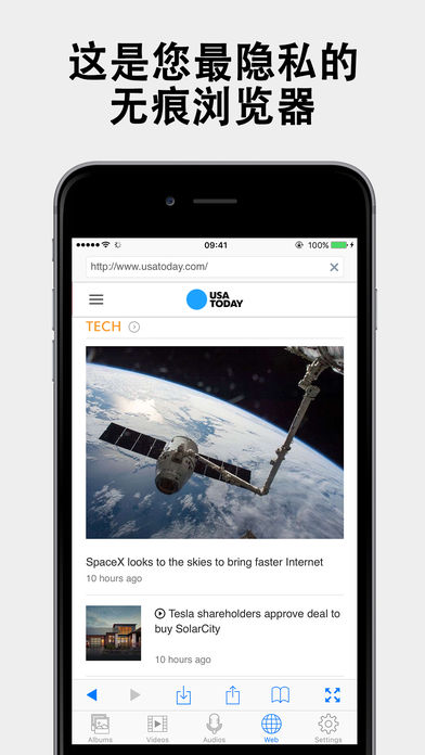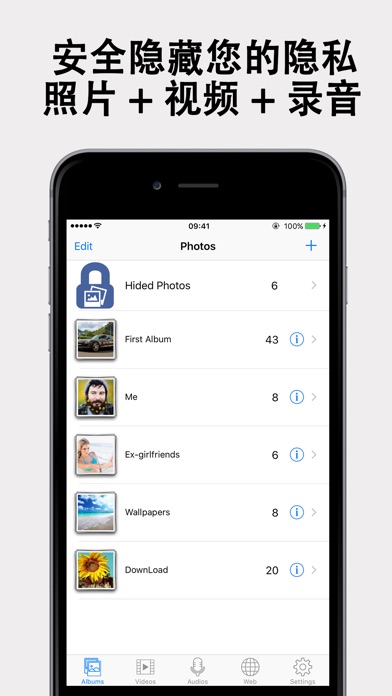 * 最私密最强大的图片管家 - 隐藏在浏览器中!* 这款应用可以安全保护您的私人相片和视频以及录音。正常打开应用时,它是一个简单的网页浏览器。而当您在搜索栏输入您设好的主密码后,它就是一个功能强大的相册视频保险库! 功能强大,性能卓越! * 使用网页浏览器伪装,为个人隐私穿上华丽的隐形战甲; * 使用主密码锁住应用,没有您的密码,任何人无法开启应用; * 应用内支持创建自定义文件夹,您可以给不同的相片视频分类; * 不同文件夹内的相片和视频可以随意相互移动; * 内置功能强大的录音机,可以直接录制并编辑您的私人录音; * 使用苹果系统提供的分享功能,您可以在其他应用中直接把图片存储到本应用; * 使用iTunes方式或者Wi-Fi方式从电脑导入相片视频到手机中; * 独特的隐藏列表可以保存您最隐私的资料; * 可以通过Wi-Fi通信方式直接在电脑端浏览本应用中的文件; …… 私人浏览器 — 浏览网页不留痕迹! * 在一个隐私的空间里自由地浏览网页 * 可将常用网页添加到书签中收藏 幻灯片浏览功能 * 左右滑动浏览切换相片视频; * 拖拽放大和缩小图片,细看局部特写; * 全屏预览播放; * 在幻灯片浏览模式中提供了多种选择:背景音乐、过度模式、循环模式等。 上传备份和传输相片视频 * 你可以通过iTunes/Wi-Fi方式把手机中的相片和电脑中的相片进行同步传输备份; * 你可以通过系统自带的分享功能将图片视频等分享出去; * 你可以直接从系统相册或者别的应用中打开此应用并将需要的图片插入该应用中。 伪装密码功能 * 如果您这款伪装网页浏览器不小心被人发现了,这个令人讨厌的人可能会恳求你打开来看看。这时您只需要告诉他你预先设好的伪装密码,输入伪装密码打开的应用看到的是完全不用的相册! 分享功能特性 * 导出相片到系统相册中; * 直接通过邮件发送图片给朋友; * 复制图片或直接将图片复制到信息框中回复朋友短信息; * 可从其他应用中直接打开该应用。 HiBrowser 支持大量主流媒体格式 * 相片:jpg, png, bmp, tif, tiff, jpeg, etc. * 视频:mov, mp4, m4v, mph, etc. * 音频:mp3,wav,aacf, etc. ******************************************* 你的所有相片和视频等文件都仅仅存储于您的设备中,这是100%隐私的。所有数据不会上传到我们的服务器,我们没有任何能力可以获取到您的资料。请百分之百放心使用!