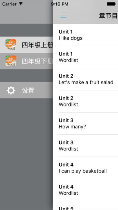 *全套原版录音和教材完全同步,助您成为英语大明星。 *根据课本配套,此应用为译林版牛津小学英语四年级上册、下册完全最新版。 *涵盖全部内容,包括全部课程对话和常用句子、单词列表、复习章节等。 *操作简便、携带方便,永远告别磁带和光盘。 【新梦想】教育应用系列完全同步教材制作,内容完全一致,您可以使用它来进行课文学习,播放教材配套音频,发音纯正地道,寓教于乐,让学习更高效和有趣。 该应用界面简洁操作简单,让孩子在舒适的环境下学习,能点,能读,更能说,是小朋友的好老师、好家长。 功能特色 ■中英文双语对照,同步语音,准确清晰。 ■内容与录音质量放心,地道纯正、原汁源味。 ■语音播放灵活,即点即学,跟读模仿随时随地。 ■完全同步教材制作,内容完全一致。 ■后台播放人性化,锁屏状态可随身听读。 ■界面简单大方,意图明了,功能实用,操作方便。 用我们的责任心、爱心、细心地去点燃学生们的梦想,让有梦想的孩子们慢慢的变化!学习成绩逐步提高,慢慢的,他们又有了新梦想,如此反复...... 让小学生中英文双语对照,发音准确清晰,是小朋友自学的好老师,把家长从繁琐的辅导解答中解放出来! 【新梦想】教育应用系列,快乐中学习,轻松点一点,英语真容易! —【新梦想】教育应用系列— 适用于多种教学场景,您可以更加便捷地进行碎片化学习,期待您的使用! 致力于为中国K12教育提供最优秀的互联网教育软件! 新梦想乐园,伴随青少年健康快乐的成长! *****软件功能***** 1.通用应用,同时支持iPhone,iPod touch,iPad设备 2.可以自动顺序播放功能 3.可以自动记录播放位置,不用担心下次找不到听到哪 4.支持离线播放,即使不联网也一样听,到哪都不怕 5.支持手动拖拽前进、后退播放 6.在兼顾软件容量以及更多课程的情况下,我们最大限度保证音频的高质量,每个有声读物片段都是经过我们精选和亲测 7.最最重要的功能,可以拖动字幕定位,音频随之定位 本应用与《义务教育教科书译林版牛津小学英语四年级上册、下册》课本同步 新版目录(四年级上册): Unit 1 I like dogs Unit 2 Let's make a fruit salad Unit 3 How many? Unit 4 I can play basketball Project 1 A profile Unit 5 Our new home Unit 6 At the snack bar Unit 7 How much? Unit 8 Dolls Project 2 My snack bar Learning tips Word lists 新版目录(四年级下册): Unit 1 Our school subjects Unit 2 After school Unit 3 My day Unit 4 Drawing in the park Project 1 My school life Unit 5 Seasons Unit 6 Whose dress is this? Unit 7 What's the matter? Unit 8 How are you? Project 2 A party Learning tips Word lists