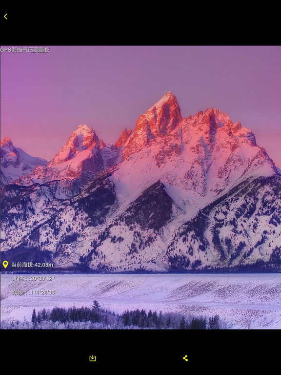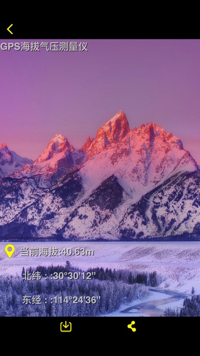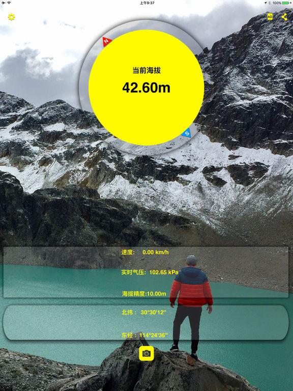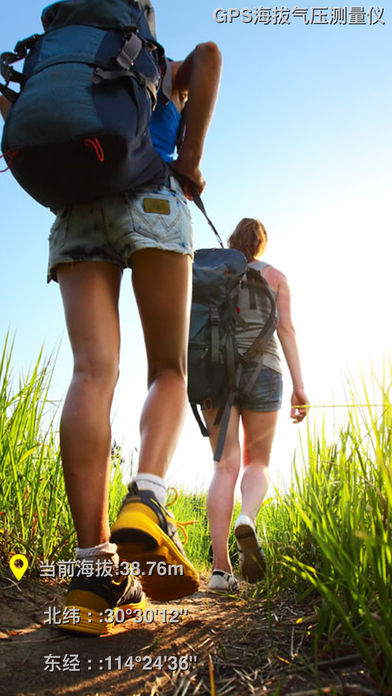 ==最后一天半价!赶快下载吧!== 支持iOS10! GPS海拔气压测量仪,为户外旅行爱好者量身打造的APP! *****特点***** + 基于GPS、无需网络,实时测量海拔、气压、时速及经纬度! + 内置指南针,让你准确辨别方向! + 旅程中任意一处美景都可随时拍下,并附有定位信息水印! + 通过各类平台一键分享照片或位置信息给小伙伴们! + 支持“today”插件功能!