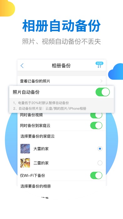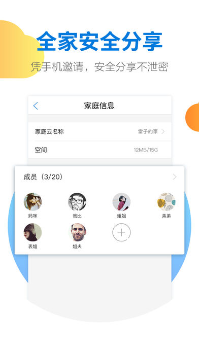 家庭云是中国电信面向家庭用户推出的家庭共享云存储服务,让你与家人拍摄的照片和视频安全的保存在一起,在轻松分享的同时,将美好的时光珍藏。 1)一个家庭一片云,远在老家的父母也能随时看到你照片和视频,让爱无距离 2)孩子成长的印记可以留在家庭云中,让全家人共享孩子的成长趣闻 3)支持多达20位家庭成员,让你的大家庭轻松共享 4)2TB(2048G)超大空间,相当200台16G手机的存储空间,可存20万首歌曲、200万张高清照片 5)家人的照片、视频均可保存到这里,国家队,妥妥的 6)中国电信IPTV电视也可看家庭云里的照片和视频,大屏体验,更爽 7)中国电信宽带用户通过营业厅和10000号办理家庭云乐享包业务,即可开通 8)如有问题,请加QQ群反映(253637436),客服妹纸热情为您服务哦~ 您也可以电话联系10000号,我们随时准备为您解答。