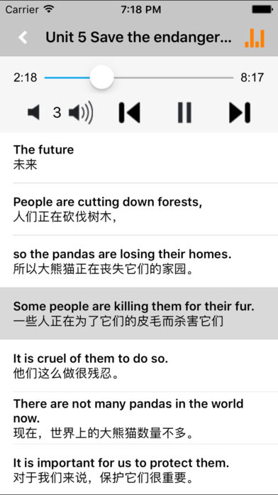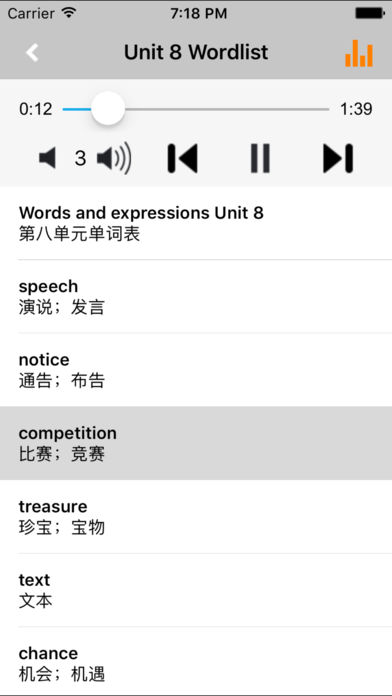 *全套原版录音和教材完全同步,助您成为英语大明星。 *根据课本配套,此应用为沪教版上海牛津初中英语八年级上册、下册完全最新版。 *涵盖全部内容,包括全部课程对话和常用句子、单词列表、复习章节等。 *操作简便、携带方便,永远告别磁带和光盘。 【新梦想】教育应用系列完全同步教材制作,内容完全一致,您可以使用它来进行课文学习,播放教材配套音频,发音纯正地道,寓教于乐,让学习更高效和有趣。 该应用界面简洁操作简单,让孩子在舒适的环境下学习,能点,能读,更能说,是中学生的好老师、好家长。 功能特色 ■中英文双语对照,同步语音,准确清晰。 ■内容与录音质量放心,地道纯正、原汁源味。 ■语音播放灵活,即点即学,跟读模仿随时随地。 ■完全同步教材制作,内容完全一致。 ■后台播放人性化,锁屏状态可随身听读。 ■界面简单大方,意图明了,功能实用,操作方便。 用我们的责任心、爱心、细心地去点燃学生们的梦想,让有梦想的孩子们慢慢的变化!学习成绩逐步提高,慢慢的,他们又有了新梦想,如此反复...... 让中学生中英文双语对照,发音准确清晰,是中学生自学的好老师,把家长从繁琐的辅导解答中解放出来! 【新梦想】教育应用系列,快乐中学习,轻松点一点,英语真容易! —【新梦想】教育应用系列— 适用于多种教学场景,您可以更加便捷地进行碎片化学习,期待您的使用! 致力于为中国K12教育提供最优秀的互联网教育软件! 新梦想乐园,伴随青少年健康快乐的成长! *****软件功能***** 1.通用应用,同时支持iPhone,iPod touch,iPad设备 2.可以自动顺序播放功能 3.可以自动记录播放位置,不用担心下次找不到听到哪 4.支持离线播放,即使不联网也一样听,到哪都不怕 5.支持手动拖拽前进、后退播放 6.在兼顾软件容量以及更多课程的情况下,我们最大限度保证音频的高质量,每个有声读物片段都是经过我们精选和亲测 7.最最重要的功能,可以拖动字幕定位,音频随之定位 本应用与《义务教育教科书沪教版上海牛津初中英语八年级上册、下册》课本同步 新版目录(八年级上册): Module 1 Amazing things Unit 1 Encyclopaedias Unit 2 Numbers Module 2 Science and technology Unit 3 Computers Unit 4 Inventions Module 3 Culture and history Unit 5 Educational exchanges Unit 6 Ancient stories Module 4 School life Unit 7 Memory Unit 8 English Week Vocabulary 新版目录(八年级下册): Module 1 Social communication Unit 1 Helping those in need Unit 2 Body language Module 2 Arts and crafts Unit 3 Traditional skills Unit 4 Cartoons and comic strips Module 3 Animals Unit 5 Save the endangered animals Unit 6 Pets Module 4 Discovery Unit 7 The unknown world Unit 8 Life in the future Vocabulary