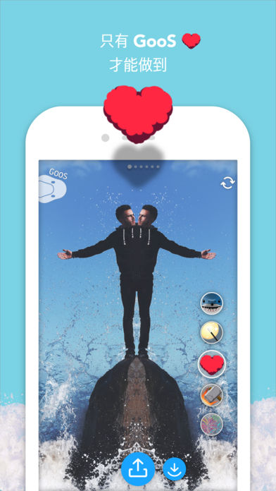 Adding awesome motion graphics to your videos has never been easier. In just one tap, add interactive stickers. You don’t even have to stop shooting! ==Key Features== •Swipe sideways for live (real-time) filters and lenses •Swipe vertically to change the color tone •Tap to create interactive stickers •New live filters updated regularly GoosCam has a simple interface you can’t find anywhere else. You will be able to cast spells, launch fireworks, throw eggs on people’s faces, and even fling poo. ALWAYS NEW Our animated sticker effects are interactive, and you can add them even as you film a clip. They constantly rotate. Every day is a new set of fun fx! EASY TO USE You can film, add filters and effects, and save your clips all in one screen. There’s no learning curve and best of all, no waiting time. Our cloud technology makes rendering your video instantaneous. TOTALLY UNIQUE Every video is completely unique, and with tons of effects to choose from that change every day, you’ll never make the same clip twice! We are always open to new ideas. If you want learn more about us just ask john@alive-story.com or come to our website http://goos.io ! Or ask us on twitter! You can find us @goosapp