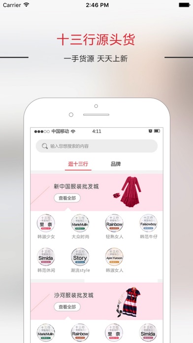 十三行, 十三行源头货,没有中间商的快时尚女装闪批平台。 一手货源,一件起批! 一流买手团队为你挑选最新好款,帮你打造补货爆款,让全国店主打货:省钱、省心、省力! 精选广州十三行服装批发女装批发优质档口,进货拿货更轻松! 逛十三行,现在上网就可以! 互联网+十三行, 我们致力于打造网上十三行,传承十三行的历史商业文化,延续海上“丝绸之路”,为中国的“一带一路”国家战略与伟大复兴做出成绩与贡献。绩与贡献。