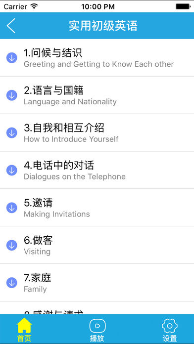 ●●●●●本软件是专门为英语初学者量身打造的零基础英语学习软件,支持文本音频同步朗读,点击句子发音,滑动控制进度,锁屏之后继续播放,从此学英语不再枯燥,是英语初学者的好助手! ●●●●●实用初级英语将基本语法的学习穿插于句子的学习之中,并设计了实际运用的场景对话,方法科学,内容生动,侧重于教您学会英语基本会话,其内容涵盖历史、经济、文化等方面的小常识及日常生活,社会交往各个方面。 ●●●●●目录如下: ***《实用初级英语》系列; ***《英语口语8000句》系列; ***《英语口语999句》系列; ***《新英语900句》系列; ***《英语会话800句》系列; ***《从ABC到流利口语》系列; 软件功能: ●●●●●支持离线学习功能,即使不联网也一样学习,到哪都不怕; ●●●●●精准的睡眠定时功能,让您睡前轻松学英语; ●●●●●可以自动顺序学习功能;支持后台学习; ●●●●●可以自动记录学习位置,不用担心下次找不到学到哪里;