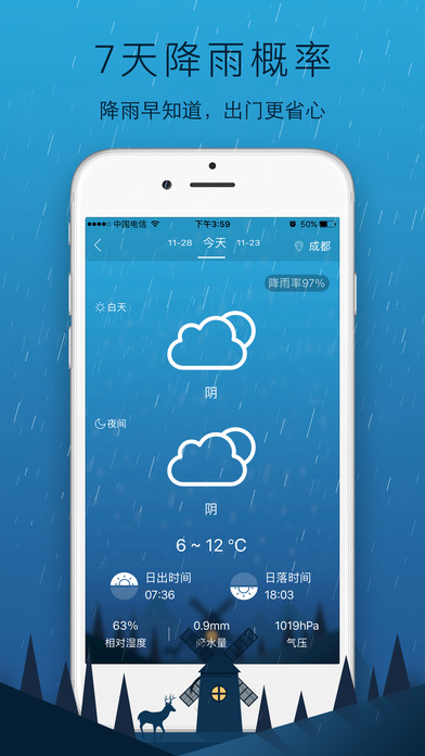 和风天气采用权威数据源授权信息,拥有国内外3000多个城市与700多个景区的天气预报和实时天气预警信息;更可查看大城市的逐小时预报以及2162个县市空气质量指数。 **特色功能** 空气质量——涵盖2162个县市的实时空气质量指数;并加入5天雾霾预报。 实况背景——阴晴雨雪的城市风景,匹配实时天气状况,给您更直观的天气呈现。 预报信息——24小时天气及温度预报;未来天气信息及趋势对比;支持2486个国内城市区县和676个国际城市。 短时预报——精准、及时预报您当前所处位置天气情况,关注你头顶每一朵云的改变。 生活助手——当日天气、穿衣贴士、出行建议,您关心的正是和风所关注的。