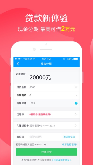 #贷款、借钱、信用卡借款来找手机贷!# 无担保门槛低,凭身份证轻松借钱2万元! 7*24小时在线申请,额度灵活,快至30分钟到账。 邀请好友可赚钱,分分钟让你暴富! 应急贷款就找手机贷,轻松解决缺钱难题。 手机贷,一款有速度、有额度的贷款、借贷、分期APP。 【产品特色】 1、闪电借款:纯线上自动化审核,快至30分钟到账; 2、额度灵活:单期借款、现金分期,1000-20000元任你选; 3、门槛超低:无抵押、无担保,有身份证即可借款; 4、操作便捷:借款进度实时查询,到期还款提醒,借还方便; 5、安全保障:正规公司,承诺隐私安全。 【联系我们】 使用过程中遇到任何问题,可通过我们的官方微信公众号反馈。 微信公众号:手机贷 客服电话:400-6363-636