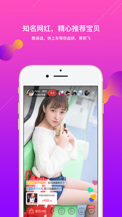 网红网App,专注于电商直播的一个独立运营平台。网红网凭借线下丰富的产品供应链以及签约近万名网红艺人。 通过电商+直播的概念,实现“边看变买”、“边播边卖”的互动直播模式。让用户体验到全新的电商直播购物。 产品特色: 1、直播热榜 通过对最受欢迎的主播、最热销的产品、最受好评的产品等参数计算后,将最优产品推送到首页进行展示; 2、互动购买 用户可以随时问、随时看、随时买; 3、电商体系 电商购物流程一样都不少,轻松购物。