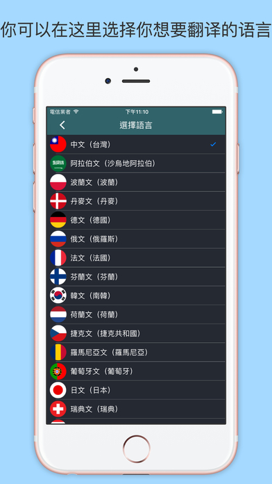 == 最后一天半价! 赶快下载吧!== 语音翻译官是一款功能强大的随身翻译工具,支持 23 种语言的实时语音翻译 【语音识别输入】 选择语种,轻轻一点即可语音输入你想要翻译的句子,即可马上得到翻译语言语音,超便捷。 超精准语音识别,再也不用一个个敲打,解放你的双手! 人多的地方不好意思语音输入?没问题!语音翻译官还支持键盘输入文本哦 【多语种在线翻译】 语音翻译官支持中文、英语、日语、韩语、法语、俄语、西班牙语等23种语言 【翻译收藏】 长按句子,即可选择修改、删除或者收藏该句子及其翻译。常用句子收藏,省时省力更省心! 【超简洁界面】 语音翻译官简洁的对话交互模式,让你体验同声传译般的流畅和快感,让语言问题不再成为障碍。 适用场合: 1. 出国旅行 世界那么大,你想去看看?别让语言成为你的障碍,语音翻译官给你一场说走就走的旅行!让你和国外当地人无障碍交流,尽情享受旅游时光。 2. 口语练习 纯正发音,随时随地纠正发音问题,让你有一口地道的外语发音 3. 日常办公 4. 外语学习 ……. 世界那么大,装上语音翻译官,一起去看看!