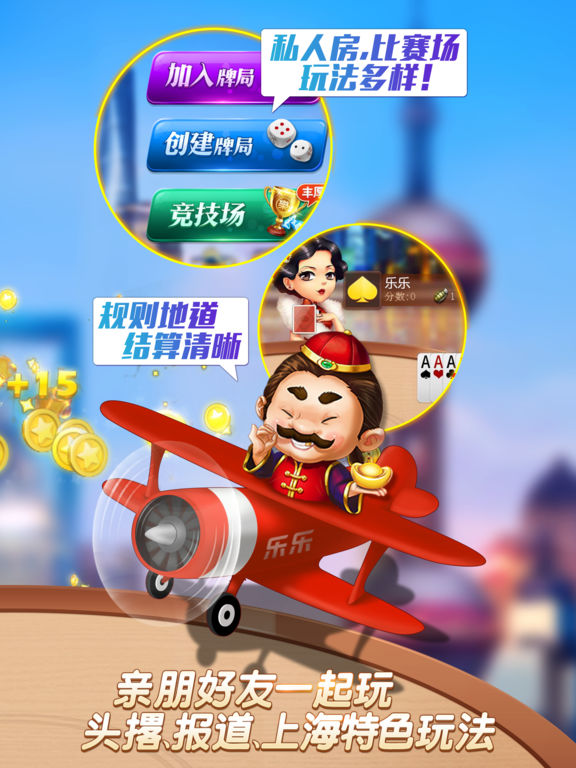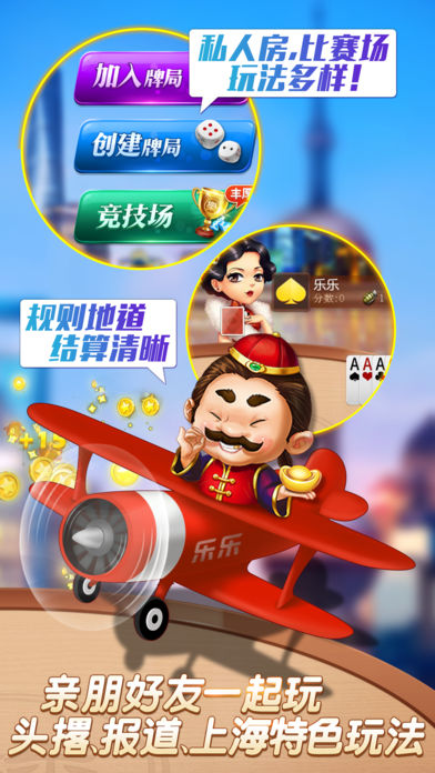 《乐乐上海斗地主-三打一牌友圈》又称上海三打一,提供最地道的上海斗地主玩法,绝对本地玩法,沪上棋牌一绝;游戏画面海派风味十足,兼有地道上海话配音的,瞬间带您回到纯正的沪上棋牌室。提供熟人牌友一起斗地主的娱乐环境,想不玩都不行。 上海斗地主:采用上海地区最流行的两副牌打法,每局有1名玩家做地主,独自对抗名玩家组成的“农民”小队,先出完牌的一方获胜;游戏内设有“摊打”“明王”“头撂”“报到”“荒番”等规则,提升游戏乐趣。 《乐乐上海斗地主-三打一牌友圈》基于沪上本地棋牌玩法,构建了沪上牌友的网络棋牌室,这里都是您熟悉的亲朋好友,同学故旧,是大家开开心心的牌友圈。 游戏特色: 1:登录就送游戏钻石,诚意满满。 2:无需注册立刻体验,告别复杂操作时代。 3:输赢和翻倍与实际上海三打一规则、计算方式相当,凸显本土特色。 4:让牌友无论在天南地北都能在一起战斗,熟人牌友线上社交圈。 今年最有诚意的上海本地斗地主,沪上棋牌首选,最优秀的沪上牌友圈!