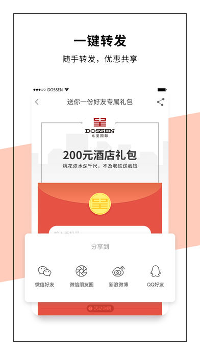 东呈会APP 东呈国际集团官方酒店预订平台,一款订房像打车一样简单的app 【云图订房-快全准】 覆盖全球200多个城市超1000家酒店,随时随地,快查、快订,住宿无忧! -云图订房:在地图上快速呈现周边酒店,价格距离一目了然 -卡片订房:酷炫的选择酒店体验,根据地图距离,左右滑动即可迅速选择最近的酒店信息 【官方订房—价更优】 订房优惠提前知,保证实价有房,实惠有保障 -新用户礼包:首次下载赠送200元优惠券包 -会员积分: app订房最高可享受3倍积分,积分可换免费房 【随行秘书—更懂你】 -商务旅行好帮手:基于时间、位置,浏览习惯,智能推荐酒店与房型,一周7天出行无忧 -智能出行指引:一键导航到酒店,出行快人一步,更优质的酒店住宿体验 【买家秀场—真性情】 真实的酒店点评,您想知道的这都有 -匿名点评:保护您的订房小秘密 -修改点评:48小时内可修改点评 【东呈国际集团简介】 东呈,一家卓越的酒店集团,世界酒店集团32强 ,中国酒店集团8强。 拥有近20000名员工,1000万忠实会员。每天有近10万名客人入住,每年服务客人超过4000万。 目前旗下自有八大酒店品牌和一个金融服务平台,包括中高端商务酒店品牌——怡程酒店、标准中档酒店品牌——宜尚酒店、高端经济型连锁酒店品牌——城市便捷、个性化商务连锁酒店品牌——精途酒店、沉浸式中高端度假酒店品牌——隐沫酒店、中高端城市个性商务连锁酒店品牌——柏曼酒店、中高端生活方式类酒店品牌——悦涧酒店、中高端服务式公寓品牌——铂顿国际公寓、专业金融服务平台——大呈金融;还有联手万豪国际在中国推出的万豪旗下中档酒店品牌——万枫酒店。 九大品牌涵盖经济连锁到高端酒店、商务旅行到休闲度假、短期居停到长租公寓等多种住宿产品;覆盖不同的细分市场,打造大住宿产业最强企业平台。 全球布局超过1000家酒店,遍布中国、马来西亚、泰国、印度尼西亚、韩国、白俄罗斯等国共200多座城市。