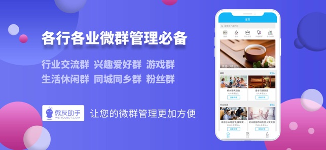 注册即可免费体验群机器人。 请关注公众号(微友助手)获得专业客服支持与帮助说明 微友助手是国内顶尖的微群管理软件,作为实用的微群助手,帮助群主管理微群,帮助扩充微群人数、让更多的人加入您的微群。 对于群主: 可设置微群主题、微群所在地、最具代表性的群友,吸引更多感兴趣的朋友加入。 对于群友: 查找加入感兴趣的群,结识同一圈子的好友。这里有每日段子群、篮球发烧友部落、新媒体运营交流群等等。 【产品特点】 1. 自动通过好友验证 当有人加你时,自动通过验证请求,并且你可以设置消息作为自动回复。 2. 自动拉人进群 可设置入群关键词和对应的群,当好友发送入群关键词时,机器人自动邀请其进入指定…