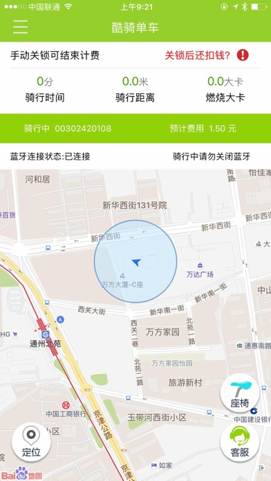 酷骑单车是一款全新的绿色出行工具,利用智能硬件网上租用与归还来实现“无桩共享”,通过手机APP就能快速租用、便捷出行,同时更轻松、快捷的享受到骑行带来的乐趣。 App以“绿色出行、服务大众”为核心理念,通过不断的科技创新打造低碳环保的绿色出行方式。 选择酷骑您将会体验到: 1.超级便捷的在线寻车功能,帮您快速定位车辆。 2.扫码一键开锁,瞬间开锁,关锁即结费。 3.完善的信用积分体系,更规范用户的出行。 [联系我们] 客服电话:400-800-7765(7:00-23:00) 温馨提示: 1.酷骑单车的行程功能会持续使用GPS定位服务,切换至后台时,仍会继续,相比其他操作会消耗更多的电量,并影响电池续航时间。 2.因产品工作需要蓝牙支持,故使用中请勿断开蓝牙模块,保持蓝牙打开状态,以达到最佳的体验效果和完整的骑行过程。