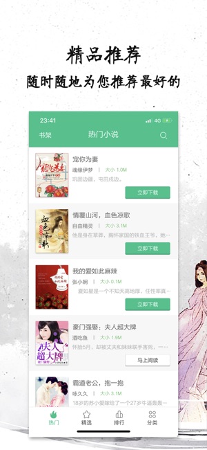 掌上读书-带给你不一样的读书体验! 1,我们的书城有数万本已完结小说; 2,所有小说全部可以下载,全部全本下载; 3,我们的书城不仅有热门小说,电视改编小说,更会不断更新最新的小说; 4,我们有专门的小编负责整理不同类型的专题; 5,我们还有干净整洁的书架与读书引擎; 6,感谢你的下载使用与支持!