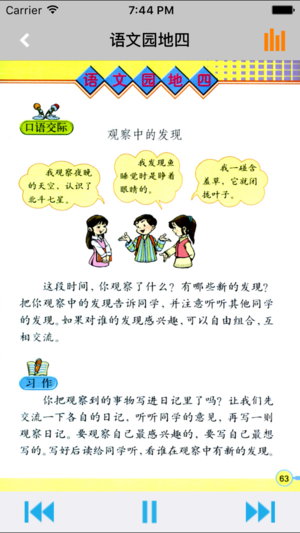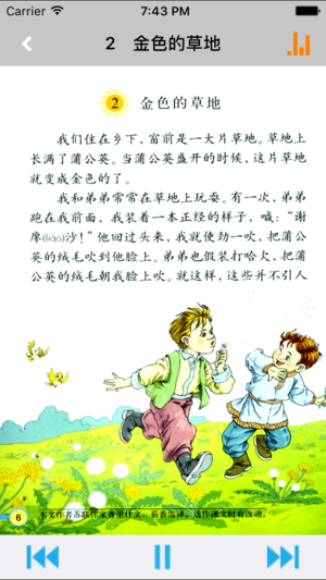 *全套原版录音和教材完全同步,助您成为中文大明星。 *根据教材配套,此应用为人教版小学语文三年级上册完全最新版。 *涵盖教材全部内容,让您全面掌握拼音字母、生字、词语、句子、课文、故事、诗歌等课程内容。 *操作简便、携带方便,永远告别磁带和光盘。 【新梦想】教育应用系列完全同步教材制作,内容完全一致,您可以使用它来进行课文学习,播放教材配套音频,配乐读音准确清晰,寓教于乐,让学习更高效和有趣! 该应用界面简洁操作简单,让孩子在舒适的环境下学习,能点,能读,更能说,是小学生的好老师、好家长。 功能特色 ■配乐读音准确清晰,怡情养性,陶冶情操。 ■内容与录音质量放心,语音纯正、朗诵有配乐。 ■…