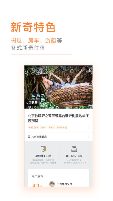 【途家民宿】是途家网倾力打造全球精品民宿APP; 途家,全球民宿分享的领航者; 精选国内外中高端度假公寓、别墅及特色民宿,风格迥异,体验新奇; 能做饭能洗衣,能带宠物能聚会,能长租能短租,更具家庭氛围; 低廉的价格,星级的享受,比等价酒店空间大,设施更齐全; 自由行、周边游、自驾游、出境游和家庭游就选途家; 途家网现已覆盖中国大陆335个目的地和海外及港台地区1018个目的地,在线房源超过45万套,包含公寓、别墅、民宿等具有家庭氛围的住宿产品,可满足家庭出游、聚会团建、商务差旅、休闲度假和周租月租等各类出行住宿需求。 2016年,途家网战略并购蚂蚁短租、携程、去哪儿公寓民宿业务,正式形成“途家、蚂蚁短租、携程、去哪儿的公寓入口”四大平台的矩阵,并进一步完善住宿分享领域的生态系统。 立刻下载体验。