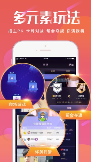 最热捧的游戏化直播产品,一样的直播,不一样的玩法。 各种奖励等你来拿,做任务、抢擂主、爬塔pk、开宝箱等各种玩法由你探索。 来这里,展开一场新奇的直播之旅吧! 产品特色: [擂主]看直播抢擂主,各种惊喜在等你 [帮会]任务等你来,奖励领到嗨 [爬塔]阳光、卡牌、爱心应有尽有,闯关pk最美主播 [游戏]卡牌对战pk不停,海量奖励等你来拿