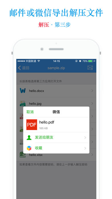 专业的rar、zip、7z文件压缩与解压缩利器。 可导入本地压缩文件,可电脑WiFi上传文件,也可以输入网盘网址,下载网络压缩文件后解压。对于带密码的压缩文件,同样可以解压。可压缩打包手机相册中的图片与视频。 压缩和解压缩后的文件轻松通过邮件或者第三方app导出。 注意:[解压缩]仅仅是手机压缩/解压缩工具,与其它桌面压缩软件无任何关系!