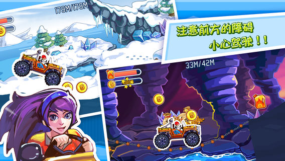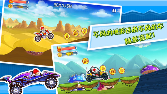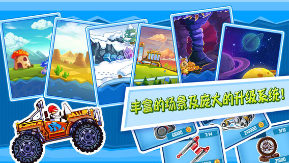 狂飙越野 《狂飙越野》是一款集跑酷、驾驶、平衡与一体的休闲类游戏。 凹凸不平的地面带来颠簸的驾驶体验,真正考验您的驾驶技术。 跑不远?别担心,途中的汽油与金币以及更换性能更好的赛车都会助您一臂之力。 爬雪山,过草地,上陡坡,越沟壑,更有体验月球表面失重的机会。 不要吹牛,能不能掌握好您的油门与刹车,跑一个试试? 游戏特点: 1.新颖的跑酷游戏,无限的挑战! 2.丰富的场景及庞大的升级系统 3.不同的地形选用不同的车,随意搭配 4.注意前方的障碍,小心驾驶! 5.神秘的宇宙,体验不同的驾驶感。