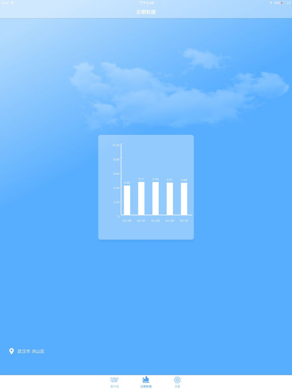 紫外线监测是一款测量紫外线强弱的app 皮肤过量暴露在紫外线中会导致晒伤和眼睛伤害,例如皮肤癌和白内障等 使用紫外线监测,测量实时的紫外线指数,帮助你掌握天气情况,即使做好防晒措施 ***主要特点*** 1. 紫外线指数分等级进行显示,辐射强弱一目了然 2. 提供紫外线指数折线图,包括过去两天的历史记录,当日紫外线指数以及未来两天的紫外线情况预测