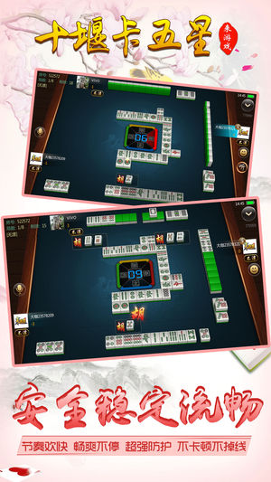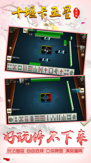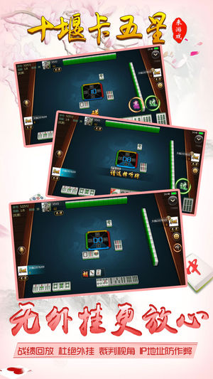 〜〜〜游戏介绍〜〜〜 正宗玩法:正宗十堰麻将卡五星玩法,经典十堰3人麻将游戏,一共84张牌,可以“碰”、“杠”不能“吃”、杠牌单独结算。要玩就玩十堰人自己的麻将。 乐趣无限:全民手机时代到来,还在因为朋友无法聚齐而烦恼么,立刻拿起手机随时随地和亲朋好友搓麻将吧! 良心出品:大厂良心出品,游戏过程更加稳定,没有掉线卡顿烦恼,再也不怕遇到一个电话毁掉一场经典牌局,断线重连让你每场对决都能不留遗憾。 绝对公平:通过录像回放,同IP报警,让玩家在公平的环境中展示自己真正的技术。 人性服务:地方特色配音让玩家享受原汁原味的十堰特色麻将,人性化智能提示帮助玩家轻松对决。