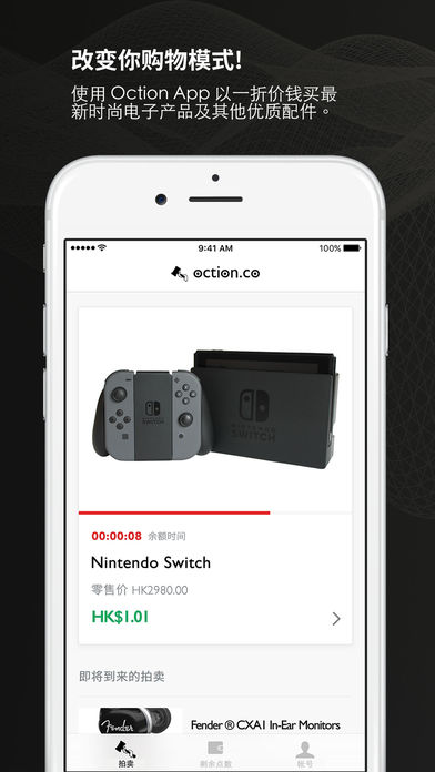使用 Oction App 以一折价格购买最新时尚电子产品及其他优质配件,包括 Smartphones,Tablets,Laptops,Smart Watch 等等。 Oction 如何运作? 所有拍卖品起价都为 HK$0.00。 每一个投标会使拍卖价格增加 HK$0.01。 而每次投标之后,计时将会从10秒开始,重新倒数。 如果没有人于10秒内再投标,最后投标人成为赢家! 主要特点: 独家优惠 :Oction 是香港 No. 1 的拍卖网站,提供多元化的优质产品及配件。 轻松体验 :投标之前,你需要确保你的帐号有足够的 Credits 。每个 Credit 收取 HK$1.00 - HK$2.00。你可以使用 Facebook 或电邮注册及登入。 安全网购 :你可以使用 PayPal 或信用卡付款,在 Oction 体验简单,安全及隐私的付款方式。 全数回赠 : 假如你未能赢得拍卖,你只需点击 “立刻购买“,就可以零售价购买你的心仪产品,你之前在此拍卖中使用的 Credits 亦会全数赠回! 立刻免费下载使用 Oction! Email: info@oction.co Facebook :https://www.facebook.com/oction.co/ Twitter :https://twitter.com/octionrocks Instagram :https://www.instagram.com/oction/