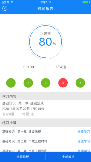 八大员考试包含施工员、质量员、安全员、标准员、材料员、机械员、劳务员、资料员的所有知识点,涵盖章节练习、模拟测试、错题回顾等功能模块,通过分析学员答题的速度和准确率判断学员的缺失的知识点和薄弱环节,有针对性地出题帮助学生补足短板,不在已经熟练掌握的知识点上浪费时间。