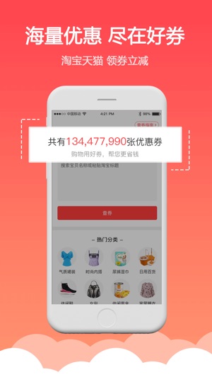 省钱购物,用好券,帮您少花冤枉钱。 实时更新海量天猫淘宝优惠券,没有我们给不到,只有您想不到。 强大的搜索功能,让您享您所想。 老司机带省钱带你飞,不多说了,赶紧上车体验吧~ 更多功能敬请期待~