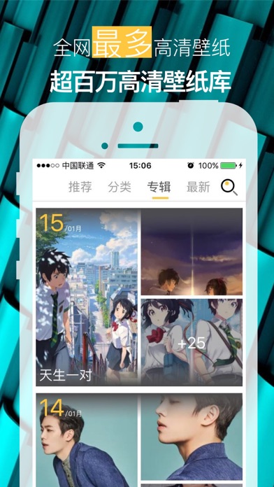 #用户体验NO.1的壁纸应用 #Appstore最具人气壁纸,长期盘踞免费榜前列 #Appstore连续热门搜索推荐 #超过99%用户5星好评,千万用户首选 #专为大屏设计,百万壁纸适配iPhone7/7plus、iPhone6/6 plus等 -------------功能特色------------ 【 百万壁纸 】统统都是超高清壁纸 【 全新预览 】预览更加身临其境 【 壁纸搜索 】轻松搜索喜欢的壁纸 【 颜色搜索 】各种颜色壁纸方便找 【 壁纸专辑 】每日推荐壁纸专题 【 壁纸收藏 】满足您的壁纸的需求 【 1080P 】 精选1080P超清壁纸 -------------用户评价------------- (*^_^*) 真的真的是非常好的软件,壁纸大,清晰!!!非常喜欢!!!大爱! --by-- 苏苏有点糖 (*^_^*) 颜色和图案都很多,也很漂亮,不错,得支持一下 --By-- 邢瑞 (*^_^*) 找到想要的,最近这段时间的使用很好的,值得朋友使用 --by-- 10若曦12 (*^_^*)比我以前用得那个好了!分类清晰图片也多!赞 --by-- tomemily2 (*^_^*) 界面简约,图片清晰,给个好评,再接再厉! --by-- Rabi-wang (*^_^*) 用了一年多了,找壁纸方便,分类也清晰,确实不错 --by-- OnFire888