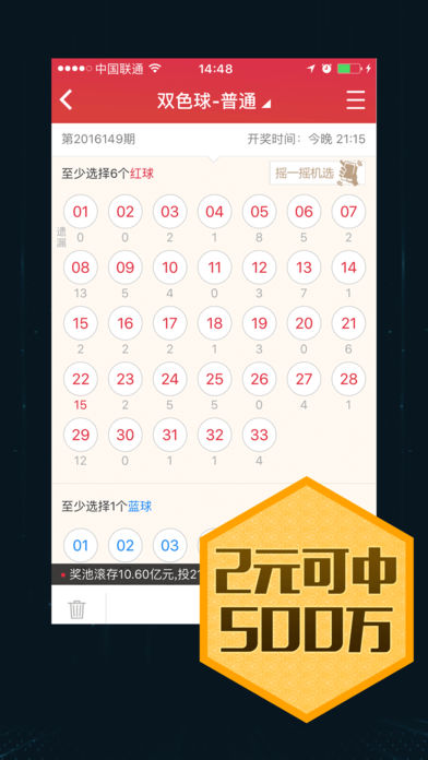 《福彩双色球》随时随地!安全高效!查询全国各种彩票 ,彩票走势图、缩水工具、透预测分析、开奖号码查询彩票。能参考高手分享的预测方案、界面美观。还等什么?马上行动!下一个500万大奖等你来拿! ——【彩票双色球重磅福利】—— 【新人礼包】注册即送88元 【每日签到】彩票、红包、优惠券免费领,更有壕礼等你来抽取 【加奖活动】高频彩加奖高达10%,中540送60 【呼朋唤友】亿元红包来就送,邀请好友奖不停 ——【特色功能】—— 【智能追号】免费双色球中奖神器,中奖率行业最高! 【开奖分析】开奖信息最快最全,未来走势一目了然! 【专业预测】牛人大师倾力呈献,内幕预测不中都难! 【彩票资讯】每天为您送上最新鲜彩票热点新闻资讯! 【提款快捷】自动派奖极速兑奖,提款秒到方便安全! 【安全可靠】线上彩店出票,可取票可托兑保障权益! ——【覆盖更多彩种】—— 数字彩:双色球,大乐透,福彩3D,七乐彩,广西快三 竞技彩:竞彩足球(加奖),篮彩(加奖),北单(加奖),胜负彩(加奖) 高频彩:山东(鲁)11选5(加奖)、广东(粤)11选5(加奖)、新(新疆)11选5(加奖),陕西11选5 (注:以上活动奖品与苹果公司无关)