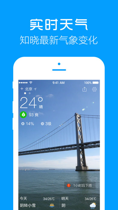 【天气预报+】为您提供最准确的实时天气,空气质量、更有未来24小时,未来15天天气预报。覆盖全国3000多个城市,PM2.5数据来源来自美使馆,准确可靠,让您放心出门,做天气预报,我们很用心。 ·精准定位,一键获取此时此地的天气状况和空气质量数据 ·支持全国范围城镇查询天气,是您出差、旅游的不可或缺的好帮手 ·空气质量及污染级别实时查询,主要污染物及了解,提前做好防护措施 ·空气污染指数,pm2.5,尽知天下空气。 健康出行,轻松“掌”握! 体贴的健康建议:根据当前的天气污染状况, 向您给出健康建议,是否适合户外活动、是否需要戴口罩。在室内、户外运动、交通出行应该做怎样的防护措施,我们将为您详细解读。 PM2.5除了本身对人体呼吸系统具有刺激作用、致敏作用及其它有害作用外,同时它还可能作为携带细菌微生物、病毒和致癌物的载体侵入人体肺部,严重危害人体健康,需要做好预防措施 天气神器在手,提前做好一切防范措施 欢迎您给予我们宝贵的意见和建议 请在设置/意见反馈中给我们提出建议,并可以添加天气预报客服群:254236449