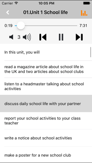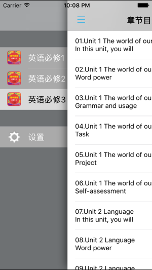 *全套原版录音和教材完全同步,助您成为英语大明星。 *根据课本配套,此应用为译林版牛津高中英语必修1/2/3完全最新版。 *涵盖全部内容,包括全部课程对话和常用句子、单词列表、复习章节等。 *操作简便、携带方便,永远告别磁带和光盘。 【新梦想】教育应用系列完全同步教材制作,内容完全一致,您可以使用它来进行课文学习,播放教材配套音频,发音纯正地道,寓教于乐,让学习更高效和有趣。 该应用界面简洁操作简单,让孩子在舒适的环境下学习,能点,能读,更能说,是中学生的好老师、好家长。 功能特色 ■中英文双语对照,同步语音,准确清晰。 ■内容与录音质量放心,地道纯正、原汁源味。 ■语音播放灵活,即点即学…