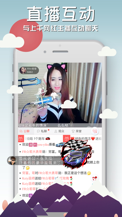 火爆真人美女视频直播,17以下禁入! 真人美女在线互动直播,超嗨的美女秀场,青春性感的美女主播在线展示才艺,在这里你可以与女神、萌妹、清纯的女生面对面互动交友。 【玩法特色】? (1)看直播,直播k歌唱响,喊麦搞怪,直播逗趣,随时随地拿出手机就能看心仪对象在线视频才艺秀,免费观看欣赏。 (2)享畅聊,免费即时沟通,支持一对一、一对多、悄悄话,胡聊海聊谈天说地,畅所欲言,欢聚一堂。 (3)听音乐,当下流行歌曲随意听,更能点唱自己喜欢的歌,直播互动听歌尽享。 (4)表爱慕,免费送礼、送礼物、做管理、做粉丝,海量高颜值主播、好声音、可爱小清新等让你尽享高贵体验。 (5)玩游戏,抢红包、砍镖车、切水果、下五子棋,同主播一起玩游戏,从此不孤单。 (6)享尊贵,酷炫座驾、进场动画、富豪等级。