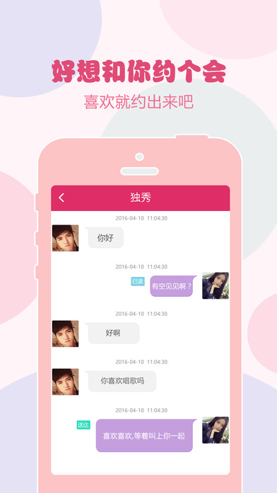 “同城秘约”是在线同城交友、约会必备社交神器,“同城秘约”支持即时通讯功能,可以和帅哥、美女随时聊天。通过附近的人功能发现更多陌生人朋友,也是一款陌生人交友利器。“同城秘约”提供同城约会功能,根据您的条件筛选帅哥美女,发现心仪的对象后,与Ta约会聊天、甚至恋爱、结婚哦。快来下载吧!