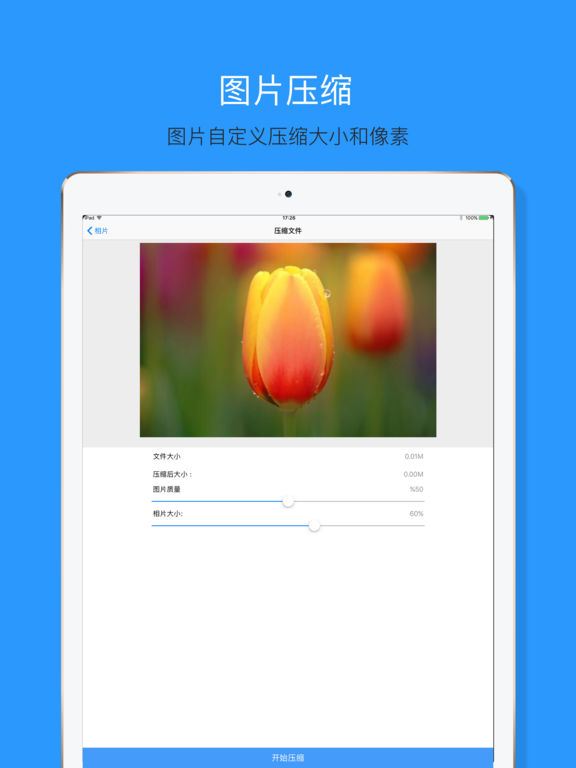 ==最后一天半价!赶快下载吧!== 支持iOS 10! 您的存储空间几乎已满,或者您想要减小视频的大小以发送分享出去?这个程序将解决你的问题。它就是视频图片压缩器,它可以帮您节省大量的存储空间,同时也不会影响您的使用。立即免费下载! 概述: - 可压缩单个视频、单个图片或批量压缩视频图片 - 可自定义压缩的分辨率及比特率 - 可自选图片压缩的优先级(大小及像素) - 可预览压缩前后的储存空间使用情况 - 可显示压缩文件前后的大小
