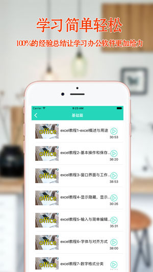 “office教程”致力于让每个人都能体验到office的乐趣。 该“office教程”应用是带文字、视频功能的学习类苹果应用,另有图文并茂教程,易学又易懂。教程的内容从最基础到高级阶段,系统而全面,适合所有初级、中高级爱好者学习。 办公软件的普及率应该仅次于操作系统.无论是个人还是公司,一般电脑里都会装有Office,WPS这些办公软件.无论在生活还是工作中,这些软件都对我们起来非常重要的帮助作用.微软最Office问世以来,一直受到众多网民的关注。新版本不仅功能更加强大,还增添了许多更实用的功能。本APP为用户详细讲解Word、Excel、Powerpoint、WPS等办公软件的使用。…