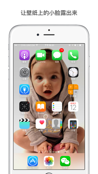 【要解决的痛点】 1、应用的图标不能自由排列。 2、图标会把壁纸上的亮点遮住。 【解决方案】 1、用壁纸上的图标生成桌面图标。 2、将生成的图标排列到合适的位置,壁纸就透出来了。 【玩法】 1、把壁纸上TA的脸露出来,美美的。 2、让应用的图标从下往上排,上面留白。 【其他】 支持URL Scheme,点击图标可以调用第三方App。比如拨打某个电话号码,调用微信扫一扫等。 【注意】整个制作的过程比较复杂,请详细阅读说明,根据手册来使用,否则无法达到满意的效果。 没耐心的用户就不要下载了,免得你后悔。 少数用户反馈图标亮度比桌面亮度高的问题,是因为导入的背景图片步骤不对导致的。要先设置好壁纸,然后长按图标进入删除状态,移动到最后一页,就可以截取一张没有图标的壁纸了,导入这张图片就可以得到正常的亮度了。因为系统在将图片设置成壁纸时会将亮度调低,所以直接选择壁纸原图是不合适的。 一篇更加详细的图文说明: http://appby.us/sunroof/index.html