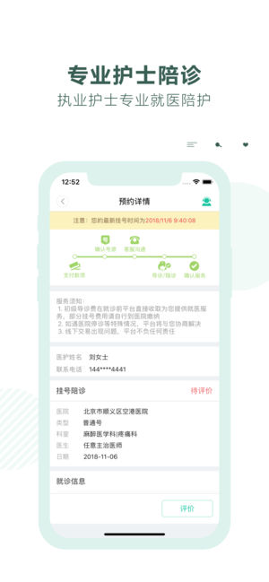 北京优医陪诊,是面向全国各地患者推出的预约陪诊服务应用。 陪诊服务说明: 1、所有陪诊服务,均为付费服务。按照陪诊服务的医院、医生和时间不同,价格不同,设有初级及高级陪诊服务。初级陪诊为取号、导诊等,高级陪诊为3小时陪同就医。 2、高级陪诊提供现场陪诊的服务人员,全部为当地执业护士。 3、为提升护士陪诊服务质量,欢迎您在陪诊服务完成后,对护士提供的服务进行评价。 服务质量监督 官方客服电话:4000122789 服务投诉邮箱:hushipeizhenfuwu@aliyun.com
