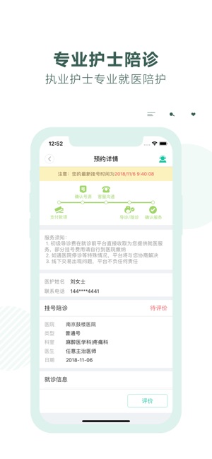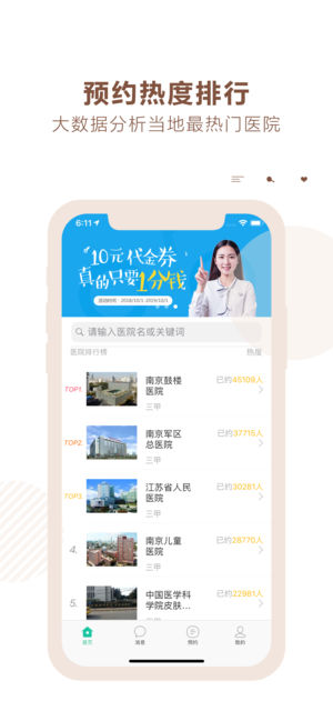 南京挂号网,是为了方便南京就医的患者,推出的预约陪诊服务应用。基于南京三甲医院的历史预约数据,通过大数据技术,推出全市三甲医院热度排行榜:南京鼓楼医院、江苏省人民医院、南京儿童医院、南京军区总医院、中国医学科学院皮肤病医院等。您可以根据医院排行热度,选择预约指定医院的挂号陪诊服务。 挂号陪诊服务说明: 1、所有挂号陪诊服务,均为付费服务。按照陪诊服务的医院、医生和时间不同,价格不同。所有陪诊服务至少需现场陪诊30分钟。 2、提供现场陪诊的服务人员,全部为南京地区的执业护士,提供医院内陪诊服务前,需出示护士本人的执业护士证件。 3、为提升护士陪诊服务质量,欢迎您在挂号陪诊服务完成后,对护士提供…