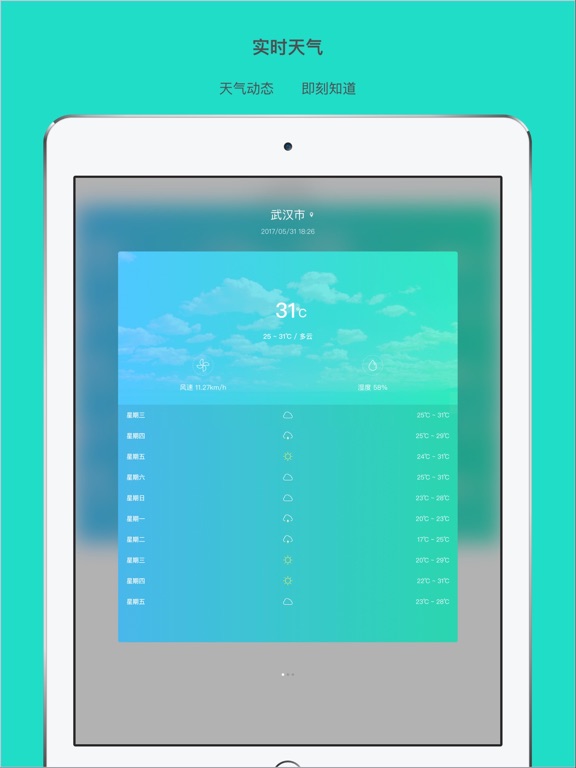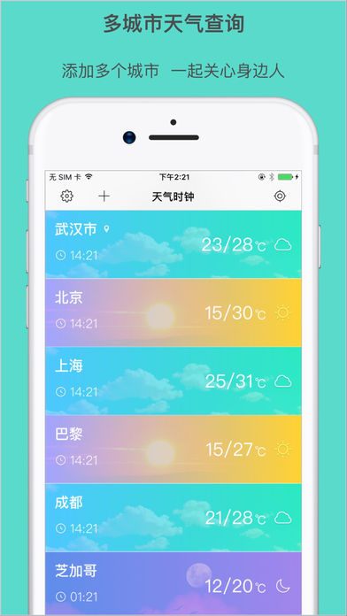 全球天气时钟是一款能实时查询全球各地天气和时间的App,帮助你安排出国旅行,出差,关心国外友人的贴心工具。 主要功能: *实时同步展示多个地区的天气,选择你关心的城市,实时同步展示,免去城市切换的繁琐 *准确权威的天气数据,未来9天天气早知道 *涵盖多个天气指数:温度,湿度,风速等 *世界时钟功能,查看世界天气和时间