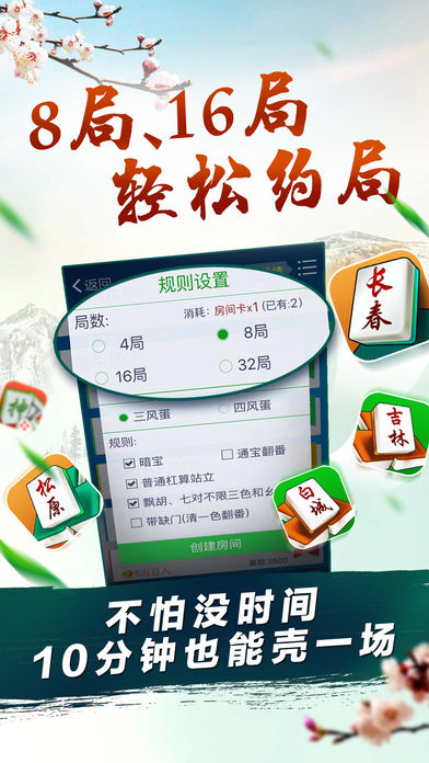 “朋友场”功能火爆上线,规则自定,随时随地壳一场! 游戏特色: 1、绝无外挂,强力的技术保证,提供健康游戏环境; 2、填大坑朋友场火爆上线;新增游戏:三人长春麻将,靖宇麻将 3、地道吉林地区麻将玩法:内含二人麻将,长春麻将,四平麻将,双阳麻将,农安麻将,九台麻将,榆树麻将,吉林麻将,松原快听,通化麻将,白山麻将,白城麻将,延吉麻将; 4、内含扑克游戏:斗地主,斗地主比赛,二人斗地主,德州扑克,东北刨幺,填大坑,至尊五张,三打一,关牌等; 5、设有斗地主赛等刺激玩法,随到随比,结束即开奖!