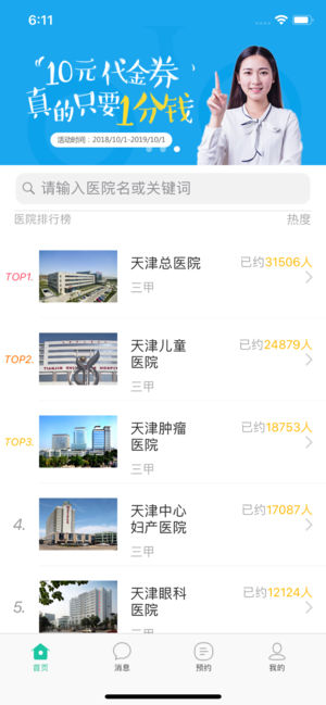 天津挂号网-天津本地医院预约挂号陪诊 天津挂号网,是为了方便天津就医的患者,推出的预约陪诊服务应用。基于天津本地三甲医院的历史预约数据,通过大数据技术,推出天津地区三甲医院热度排行榜。您可以根据医院排行热度,选择预约指定医院的挂号陪诊服务。 挂号陪诊服务说明: 1、所有挂号陪诊服务,均为付费服务。按照陪诊服务的医院、医生和时间不同,价格不同。所有陪诊服务至少需现场陪诊30分钟。 2、提供现场陪诊的服务人员,全部为天津地区的执业护士,提供医院内陪诊服务前,需出示护士本人的执业护士证件。 3、为提升护士陪诊服务质量,欢迎您在挂号陪诊服务完成后,对护士提供的服务进行评价。 服务质量监督 官方客服电…