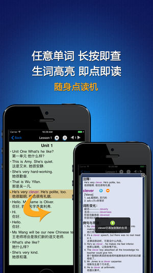 该应用是PEP人教版《小学英语五年级(上册)》(三年级起点)的同步点读和同步练习学习机, 也是AppStore上最适合孩子们学习的应用. 【随身点读机+翻译器+英汉全文字典】 教材里的每个句子都配有标准的真人读音, 英汉对照, 即点即读. 我们为课文中【每个英文单词】都配有详细的解释, 音标, 标准发音以及例句用法, 在阅读的时候只需在【任意单词上长按】超过一秒钟, 即可查阅, 即点即译, 真正做到哪里不懂点哪里. 孩子们肯定有不认识的单词, 这时候如果去查字典, 学习兴趣必然急剧下降. 【强大的学习功能】 我们为孩子们提供了【生词】【收藏】【字典】【单词测试】【单词拼写】等附加功能,…