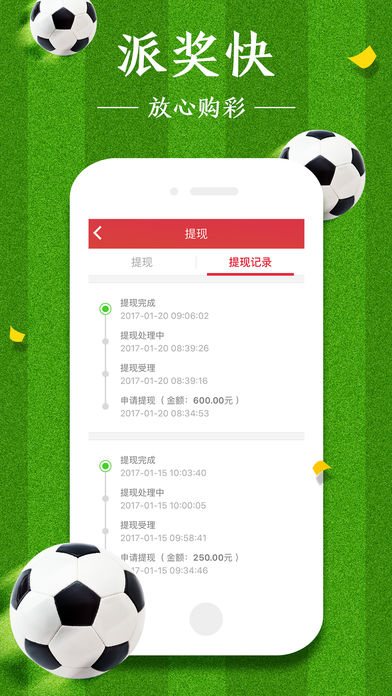 ——【竞彩足球重磅福利】—— 【新人礼包】注册即送88元,人人有份 【每日签到】彩票、红包、优惠券免费领,更有壕礼等你来抽取 【加奖活动】竞彩足球和高频彩加奖高达10%,中540送60 【呼朋唤友】亿元红包来就送,邀请好友奖不停 ——【应用特色】—— 【智能追号】免费足球彩中奖利器,中奖率行业最高! 【开奖分析】开奖信息最快最全,未来走势一目了然! 【专注竞彩】业界返奖率最高的竞彩平台,中奖宝地! 【安全可靠】同城彩店出票,可取票可托兑保障权益! 【方便快捷】极速兑奖派奖,操作流程超级清晰简便! 【即时赔率】百家欧赔、亚盘即时赔率数据专业提供! 【在线客服】客服MM全天在线,专业贴心一对一服务! ——【覆盖更多彩种】—— 【竞技彩票】竞彩足球(加奖),竞彩篮彩,单关,北京单场,胜负彩 【高频彩票】山东(鲁)11选5,广东(粤)11选5,新(新疆)11选5,陕西(陕)11选5 【数字彩票】大乐透,双色球,福彩3D,七乐彩 (注:以上活动奖品与苹果公司无关)