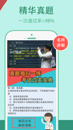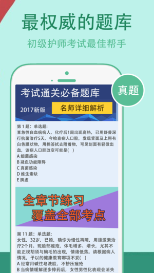 本软件为初级护师考试的软件,精心准备了2017年最新考试题库。(共计13000多道)分为不同题型,并有答案解析。以及高频考点(1500个考点),为考试的提供了充分的复习准备,可随时随地学习练习,并有配套视频培训,权威培训专家讲解,配合题库,高效加分,不限时间、次数反复观看。 有效帮助顺利通过考试,学习知识通过考试必备神器! 初级护师考试——2017必过题库 顶级名师视频讲解,考点难点一网打尽,初级护师考试通关必备! --------------------------------- 【功能介绍】 1、最新试题:分不同科目包含最新考题,并有答案解析。 2、历年真题:最新2011年~20…