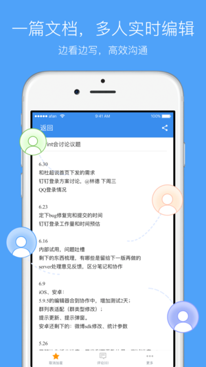 有道云协作是一款基于资料管理和沟通的团队协作工具,与个人笔记无缝连接;团队成员可以对同篇文档共同编辑,让多人协作成为现实;iOS、iPad、Mac等原生客户端全覆盖,随时、随地获取团队动态。 【有道云协作可以做什么】 - 专业的团队资料管理服务:为团队成员提供了共享、整理、和围绕资料协作的功能; - 支持所有主流的资料格式:包括Office、PDF、图片、笔记、表格和其他任意类型的文件; - 原生表格格式文件:支持多人实时协同编辑; - 版本对照功能:资料的修改都被系统地记录下来; - 实时沟通:团队沟通与资料管理有效融合,将沟通成果实时共享给全体团队成员; - 私聊:避免其他群成员被无关信息…