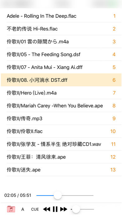 Car Cat Player 是一个全格式音频音乐文件解码器和音乐播放器,支持市面所有的音频格式的解码播放和数字PCM输出。 支持线控,耳机和EarPods / AirPods控制 支持控制台音乐播放控制 支持锁屏音乐播放控制 支持远程音乐播放控制 支持AirDrop导入文件 支持 CarPlay,CUE(如果乱码,CUE另存为UTF-8) 支持数字PCM输出 支持蓝牙播放和车载播放 支持从其他 App 导入音乐文件 支持 CD 无损音乐播放 支持无损音乐播放和SACD DSD(dsf/dff),DXD音乐播放 支持 Hi-Res 无损音乐播放 在列表向左滑动删除歌曲文件并释放存储空间。 支持的位深:1bit/8bit/16bit/24bit/32bit/64bit 支持的采样率:22kHz/44.1kHz/48kHz/88.2kHz/96kHz/176.4kHz/192kHz/352.8kHz/384kHz/705.6kHz/768kHz/2.8224MHz 支持的音乐格式: APE ,FLAC ,DSF ,DFF ,DTS ,WAV ,ALAC ,AAC ,AAC+ ,MP3 ,WMA ,DST ,WavPack ,Ogg ,Speex ,AIFF ,AVI ,MSF ,DTS-HD ,ATRAC1 ,ATRAC3 ,AIFC ,DTS WAV 8SVX exponential ,8SVX fibonacci ,AC-3 ,ADPCM 4X Movie ,APDCM Yamaha AICA ,ADPCM CDROM XA ,ADPCM Creative Technology ,ADPCM Electronic Arts ,ADPCM Electronic Arts Maxis CDROM XS ,ADPCM Electronic Arts R1 ,ADPCM Electronic Arts R2 ,ADPCM Electronic Arts R3 ,ADPCM Electronic Arts XAS ,ADPCM G.722 ,ADPCM G.726 ,ADPCM IMA AMV ,ADPCM IMA Electronic Arts EACS ,ADPCM IMA Electronic Arts SEAD ,ADPCM IMA Funcom ,ADPCM IMA QuickTime ,ADPCM IMA Loki SDL MJPEG ,ADPCM IMA WAV ,ADPCM IMA Westwood ,ADPCM ISS IMA ,ADPCM IMA Dialogic ,ADPCM IMA Duck DK3 ,ADPCM IMA Duck DK4 ,ADPCM IMA Radical ,ADPCM Microsoft ,ADPCM MS IMA ,ADPCM Nintendo Gamecube AFC ,ADPCM Nintendo Gamecube DTK ,ADPCM Nintendo THP ,APDCM Playstation ,ADPCM QT IMA ,ADPCM SEGA CRI ADX ,DV audio ,Enhanced AC-3 ,MP1 ,MP2 ,MPEG-4 Audio Lossless Coding ,RealAudio 3.0 ,RealAudio Lossless ,RealAudio SIPR , ACELP.NET ,Sierra VMD audio ,Smacker audio ,Sonic lossless ,True Audio ,TrueHD ,VIMA ,Vorbis ,Xbox Media Audio 1 ,Xbox Media Audio 2 ,Windows Media Audio Lossless ,Windows Media Audio Pro ,Westwood Audio (SND1) ,PCM Zork ,PCM signed 16-bit ,PCM signed 24-bit ,PCM signed 32-bit ,PCM 64-bit floating ,PCM mu-law ,Nellymoser Asao ,Musepack SV7 ,Musepack SV8 ,Matroska audio 和更多其它100多种格式...... 如何使用和拷贝歌曲:使用iTunes/文档同步工具拷贝至APP共享目录. DSP处理精度: 64bit 最大数字输出规格:24bit/32bit 384khz/768khz PCM信号 信噪比: 384 dB 支持邮箱:1413287676@qq.com 支持简体中文,繁体中文,UTF-8文件名