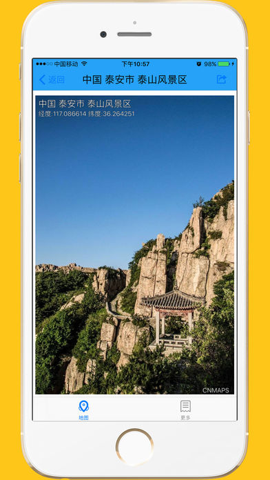 【产品简介】 “假装在另外一个地方,你懂的!” 这是一款可以模拟当前位置的软件,可以拍摄或者选择相册里面的照片打上你想要的地址和经纬度坐标水印,并保存或者分享地图上的虚拟位置到微信,微博,QQ等社交软件,让别人误以为你去了那个地方,够酷吧! 【操作步骤】 1.长按地图上的任意地点,单击地图上的标注点,或者输入关键字进行搜索就可以模拟到那个位置。 2.如果自动识别出来的地址信息不满意,你还可以点击弹出来的气泡来修改。 3.点击输入框右边的相机按钮,拍摄或者选择相册里面的照片并打上地址和经纬度坐标的水印,然后可以保存或者分享到社交软件。 4.也可以直接把你想要的位置的地图截屏直接分享出去。 【特色功能】 1.长按地图上任一点,或者点击地图上的标注点,就选中了要模拟的位置。 2.也可以通过关键字来搜索并找到需要模拟的位置。 3.点击长按出来的气泡,可以修改地址描述信息。 4.可以拍摄或者选择相册里面的照片打上你想要的地址和经纬度坐标的水印。 5.可以直接把你想要的位置的地图截屏直接分享出去。 6.可以保存模拟位置的历史记录。 7.支持放大和缩小和旋转地图。 8.支持定位当前的位置。 9.支持实时路况的显示.吐槽要模拟位置的路况。 【官方微博】 http://weibo.com/cnmaps 【意见反馈】 cnmaps@qq.com