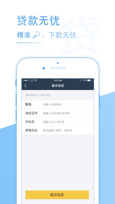 缺钱必备,凭身份证最多可借现金5000元。 1. 极速审批:最快1分钟完成审核,2分钟放款。 2. 门槛极低:无需抵押担保,不需要提交复杂的资料,有身份证就能借。无需面签,手机点几下就把钱借了。 3. 费率优惠:有借有还,不光再借不难,费率还不断打折。 4. 凭拍拍贷、用钱宝、小花钱包、你我贷、我来贷、豆豆钱、宜人贷、蚂蚁花贷、蚂蚁借呗、钱有路、给你花、现金白卡、现金卡、极速现金侠、招联金融好期贷、贷上钱、2345贷款王、快易花、蓝领贷、魔法现金、手机快贷、玖富叮当贷、先花一亿元、闪电借款正常还款的贷款账户,可大大提升您获批的概率以及授信额度。 5. 若芝麻信用表现良好,则更大几率获得高额授信。