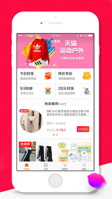 淘宝天猫购物2折起,专业买手为你推荐大额内部优惠券,省钱先领券! ● 主要功能 【大额优惠券】 购物前先领券,节省最高80%。 【热卖推荐】 优质商品精选推荐,让您购物更轻松 【品类丰富】 女装、美妆护肤、鞋包配饰、生活百货; 食品、数码、宠物、母婴童装等等; 品类丰富,你想要的都有。